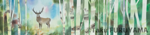 ぼく自身の話で恐縮ですが、ぼくもこんな絵を描いています。もちろん森の神聖なる使いとして鹿をイメージしたものです。